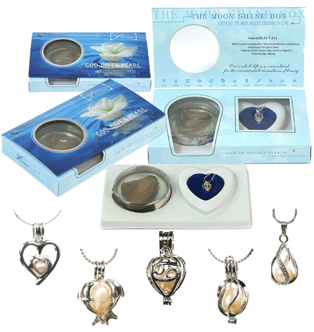 Love pearl freshwater pearl gift set included:pearl in oyster, copper or sterling silver pendant, 18" chain, opener and instruction.